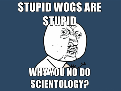 “WOG” is a term coined by Hubbard and used by Scientologists to refer to anyone who is not smart enough to be a Scientologist. In Dianetics and Scientology Technical Dictionary, Hubbard says, “Anynon-Scientologist is a ‘wog,’ someone who ‘isn’t even trying.’”