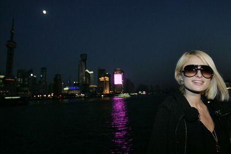 Paris Hilton visits the Bund on the bank of the Huangpu River in Shanghai November 22, 2007. Hilton is in Shanghai to attend 2007 MTV Awards on Friday. [Agencies]
