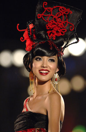 Miss China Zhang Zilin performs in the 57th Miss World Competition in Sanya of south China's Hainan Province, Nov. 24, 2007. Zhang is honored the title of best model. [xinhuanet]