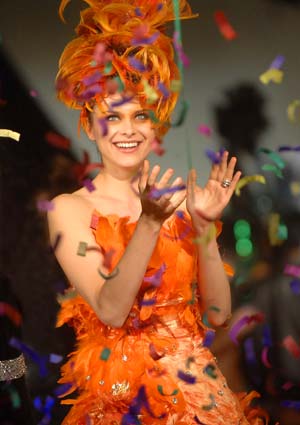 A model presents a hair design in the Shenmei International Hair Cultural Art Festival at the Dashanzi Art District (or 798 Factory) in Beijing, capital of China, Nov. 28, 2007. The festival combined fashion of hairdressing, cosmetics, dresses with accessories, attracting lots of visitors. [Xinhua]