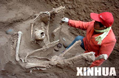 A Chinese archaeological staff works at Gu'an ancient cemetery in Anyang, a city in central China's Henan Province, Nov. 27, 2007. (Xinhua Photo)
