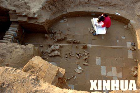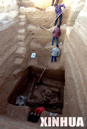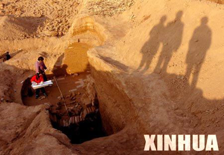 Chinese archaeological staffs work at Gu'an ancient cemetery in Anyang, a city in central China's Henan Province, Nov. 27, 2007. (Xinhua Photo)