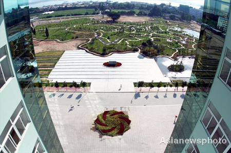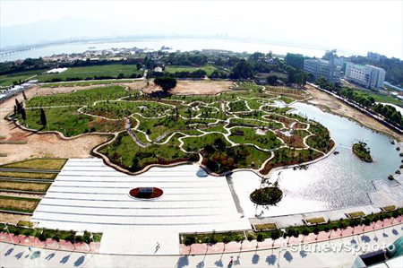 A garden is created in the shape of China's geographical shape, at the Fujian Argiculture and Forestry University in Fuzhou, East China's Fujian Province, June 24, 2008. [Asianewsphoto]