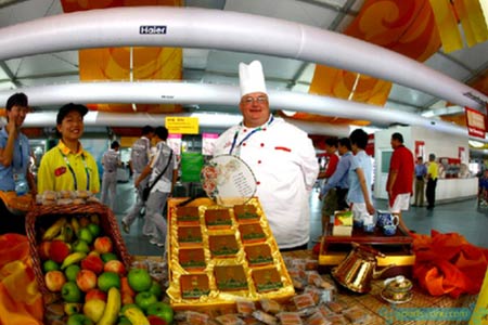 A staff member of the Paralympic Village cafeteria poses with mooncakes as the Mid Autumn Day (a traditional Chinese festival featuring family reunions) falls on Sunday. (Photo Source: China Daily/Agencies)