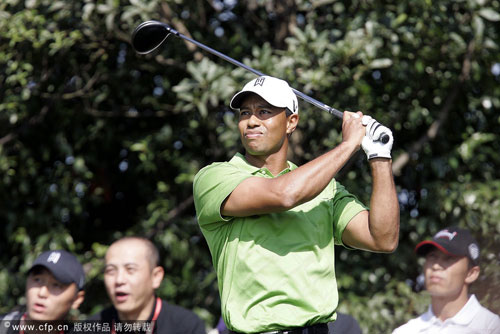 Tiger Woods of the United States hits the ball at 5th tee before pro-am golf of the 2009 HSBC champions Wednesday, Nov. 4, 2009 in Shanghai, China. The golf tournament will be held at Shanghai Sheshan international golf club from Nov. 5 to 8. [Photo: CFP]