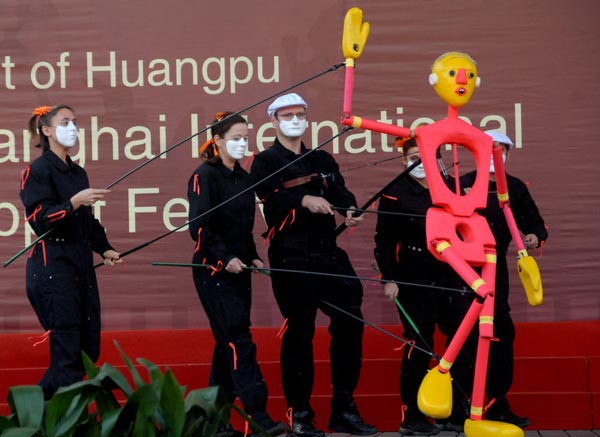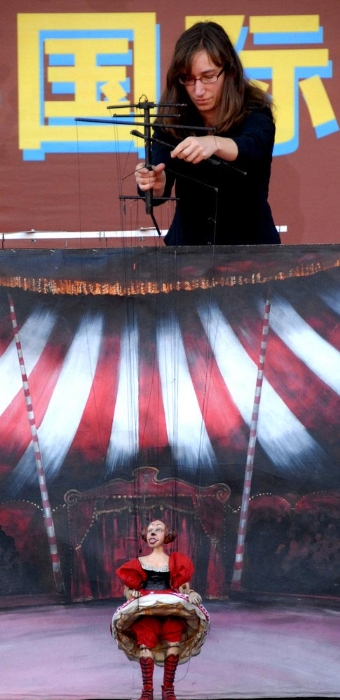 A Spanish artist stages a marionette show during the Shanghai International Puppet Festival on Friday, November 6, 2009. Thirty-three troupes from across the world will showcase their puppetry with 24 performances during the five-day-festival that began Thursday in Shanghai. [Photo:CFP]