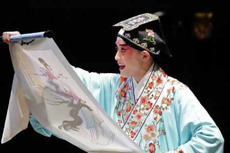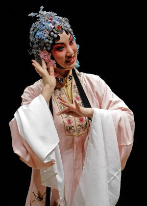 Photo taken on Nov. 7, 2009 shows a scene of "Peony Pavilion", a well-known Chinese traditional Kunqu Opera, at the ancient stage of Sanshan Guildhall in Shanghai, east China.(Xinhua/Guo Changyao)