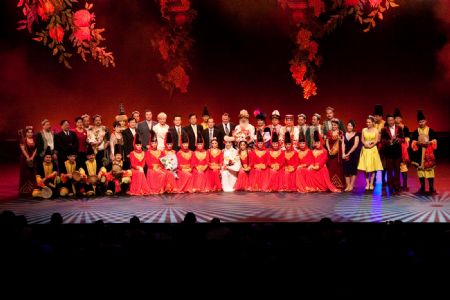 China's Xinjiang troupe performers pose during a singing and dancing performance in Brisbane, Australia, on Dec. 7, 2009. Brisbane serves as the second stop of China's Xinjiang foreign cultural exchange delegation during its visit in Australia. (Xinhua/Chen Mingwei)