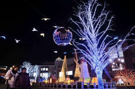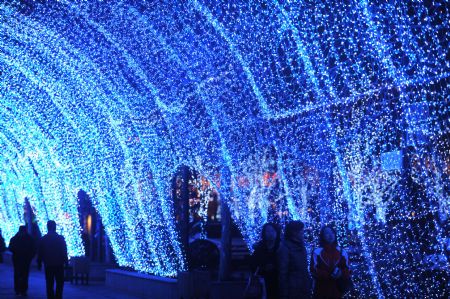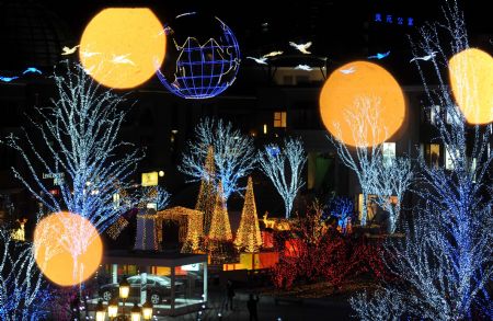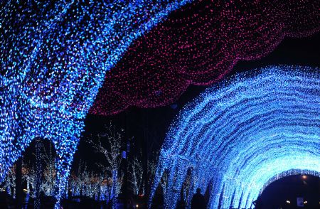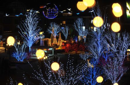The photo taken on Dec. 8, 2009 shows the lighting scenery at the west gate square of Chaoyang Park in Beijing, capital of China. The lighting sceneries formed by hundreds of thousands of colorful lights were lit for trial before the coming of the New Year Lighting Festival. (Xinhua Photo)
