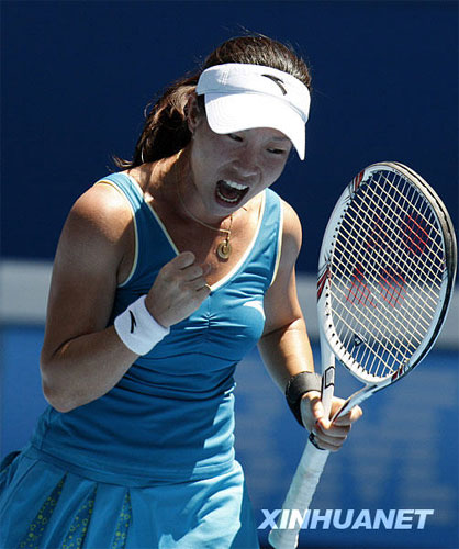 Zheng Jie of China reacts during her match against Ukraine's Alona Bondarenko at the Australian Open tennis tournament in Melbourne January 24, 2010. [Photo: Xinhuanet]