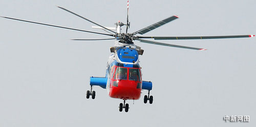 The AC313 plane, China's first homemade giant helicopter for civil use, takes off on its maiden flight on Thursday, March 18, 2010 in Jingdezhen, east China's Jiangxi province. [Photo: chinanews.com.cn]