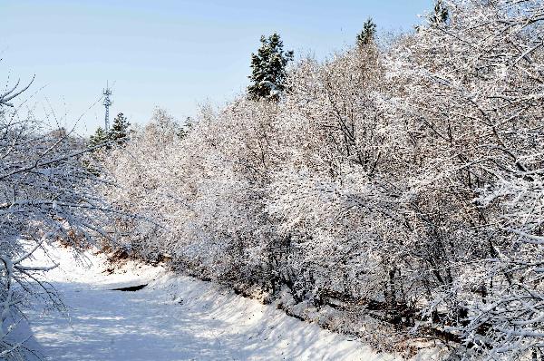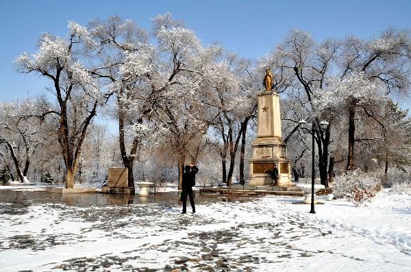 The photo taken on April 27, 2010 shows the snow scenery in a park of Zhalantun City, north China's Inner Mongolia Autonomous Region. Under the impact of cold front from Baikal, the snow started to fall down on Monday and exceeded 20mm thick in Zhalantun. (Xinhua/Wang Zewei)