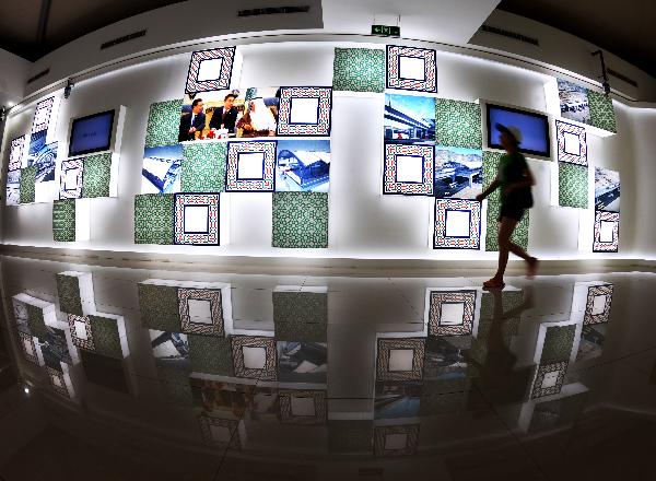 A tourist visits Makkah Case Pavilion at the World Expo Park in Shanghai, east China, on the night of July 1, 2010. More and more people prefer the night hiking in the World Expo Park to the daytime in order to avoid heat and crowded visitors. (Xinhua/Yan Yan)