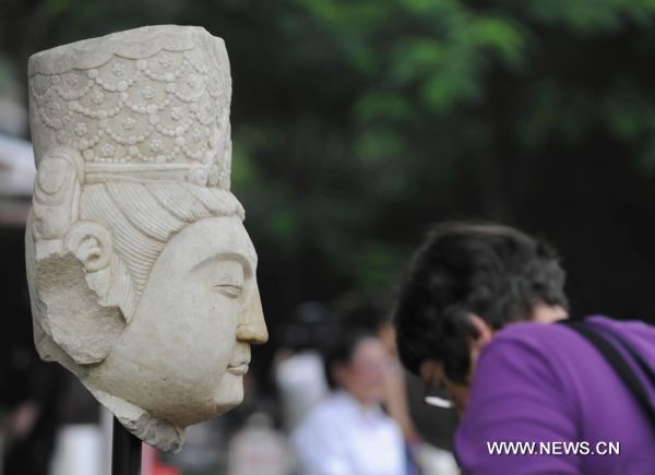 The photo taken on Sept. 2, 2010 shows the Tang Dynasty Marble Bodhisattva Head with an estimated value of 3.8 million HK dollors during a preview of the Hong Kong International Art and Antiques Fair (Fine Art Asia 2010) in Hong Kong, south China. The annual Hong Kong International Art and Antiques Fair will be held in Hong Kong Convention and Exhibition Center from Oct. 3 to 6, featuring Asian antiques and contemporary artworks. (Xinhua/Li Qiuchan)