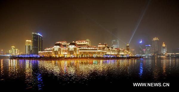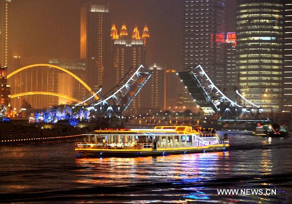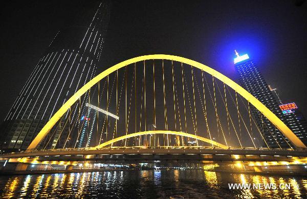 Photo taken on Sept. 6, 2010 shows the landscape light along Haihe River in north China's Tianjin. To celebrate the coming Summer Davos Forum, Tianjin accomplished 35 sets of landscape lights to embrace guests from home and abroad. (Xinhua/Liu Haifeng)