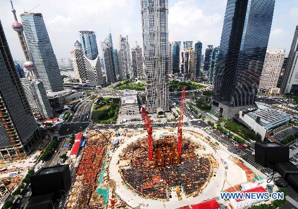 Photo taken on Sept. 20, 2010 shows the construction site of the Shanghai Tower in Shanghai, east China. (Xinhua)