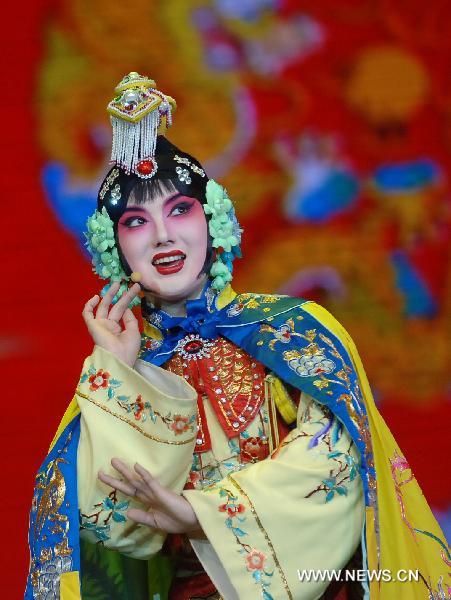 A college student performs Peking Opera in Beijing, capital of China, Nov. 21, 2010. The 3rd Beijing college art season was closed here on Sunday. More than 500 college students presented their performance in forms of music, dance and drama during the season. (Xinhua/Zhao Wanwei)