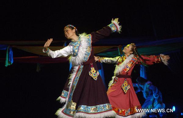 College students perform dance in Beijing, capital of China, Nov. 21, 2010. The 3rd Beijing college art season was closed here on Sunday. More than 500 college students presented their performance in forms of music, dance and drama during the season. (Xinhua/Zhao Wanwei)