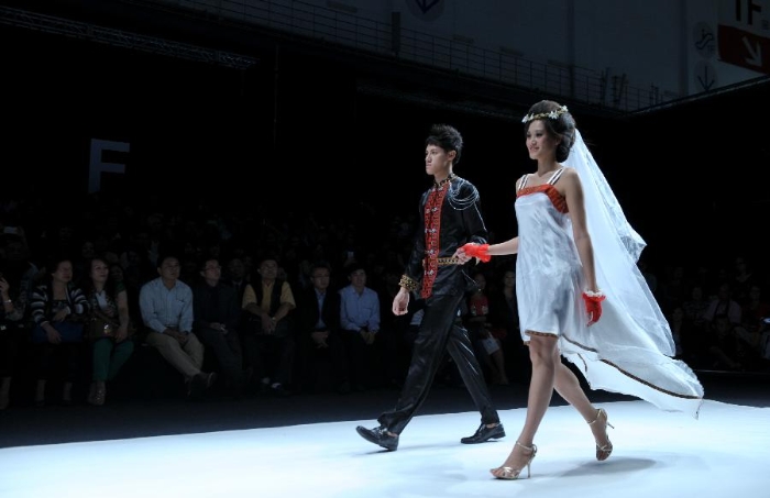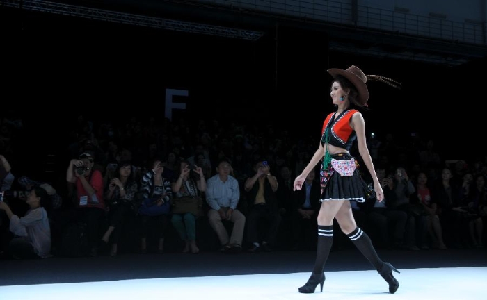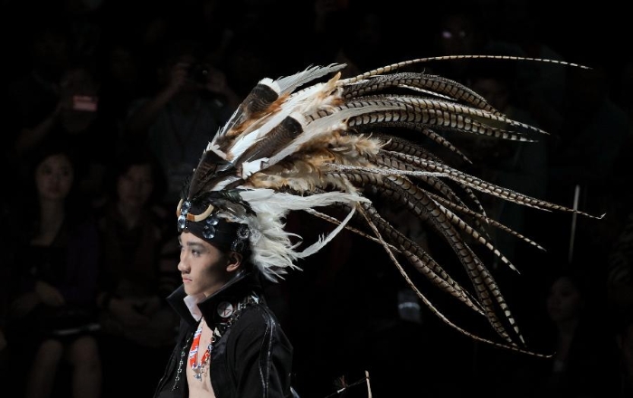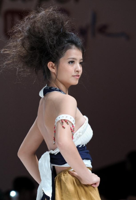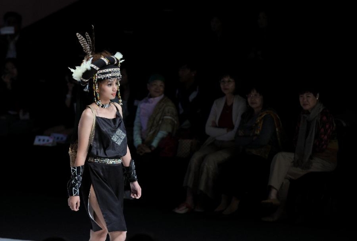 A model presents a creation at a show of indigenous fashion trend during the Taipei IN Style 2012 in Taipei, southeast China's Taiwan, Oct. 18, 2012. The three-day fashion fair opened here on Tuesday. (Xinhua/Yin Bogu)
