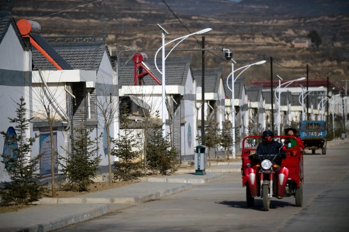 Photo taken on Nov. 28, 2012 shows the new houses for resettlement of farmers at Yanxia Township in Huating County, northwest China's Gansu Province. The coal-rich county once suffered from environment degradation due to exploitation of natural resources. Great efforts have been made in recent years to repair the environment, and now the county has turned to be a liveable place with clean air and beautiful gardens. (Xinhua/Zhang Meng)
