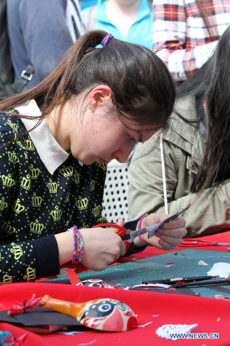 A student learns paper-cutting during a gathering on the occasion of the Mid-Autumn Festival at the Sydney University, Sept. 8, 2014. The Mid-Autumn Festival, which falls on Sept. 8 this year, is a traditional Chinese festival for family reunions, during which folks will enjoy the full moon together and eat mooncakes. (Xinhua/Jin Linpeng)