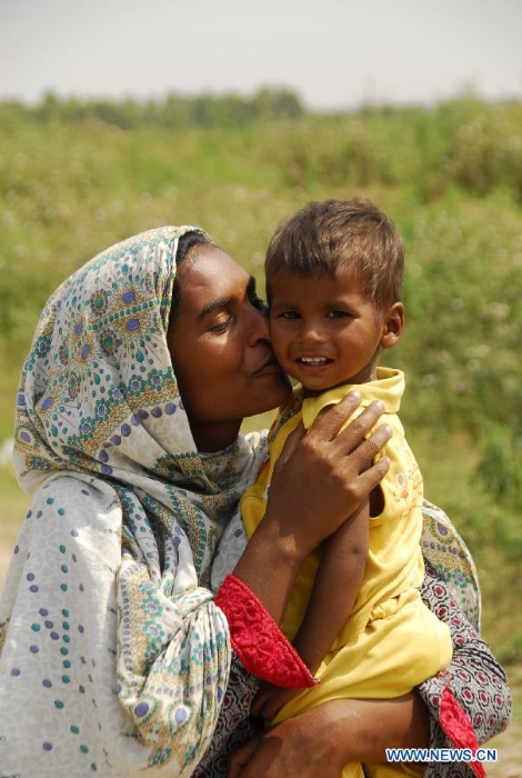 A Pakistani mother kisses her child in Islamabad, capital of Pakistan, on May 10, 2015, the Mother's Day. (Xinhua/Saadia Seher)