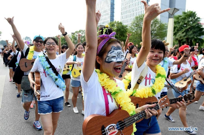 Citizens take part in a parade to celebrate the National Day in Liuzhou, south China's Guangxi Zhuang Autonomous Region, on Oct. 1, 2015. [Photo: Xinhua]