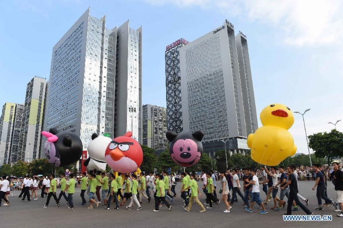 Citizens take part in a parade to celebrate the National Day in Liuzhou, south China's Guangxi Zhuang Autonomous Region, Oct. 1, 2015. [Photo: Xinhua]
