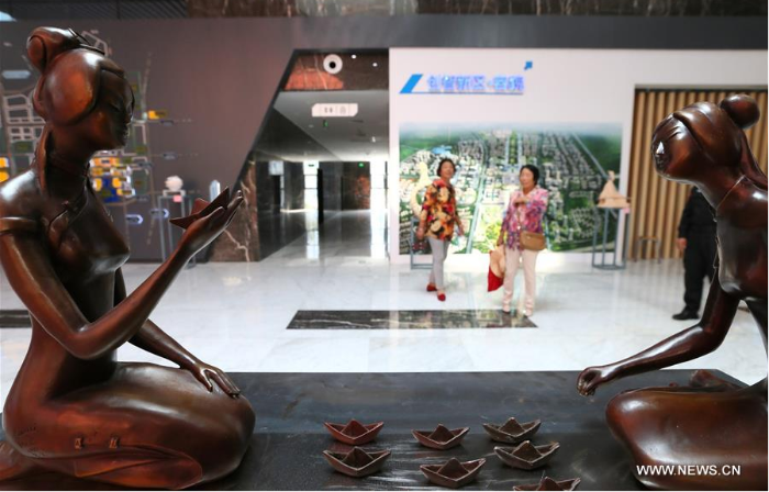 Visitors look at sculptures at the 2016 Qingdao International Sculpture Festival in Jimo, a county-level city in Qingdao, east China's Shandong Province, Sept. 22, 2016. Sculptors from more than 20 countries and regions participated in the festival kicked off on Thursday, with 85 sculptures. (Xinhua/Liao Xiaopeng)
