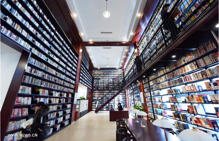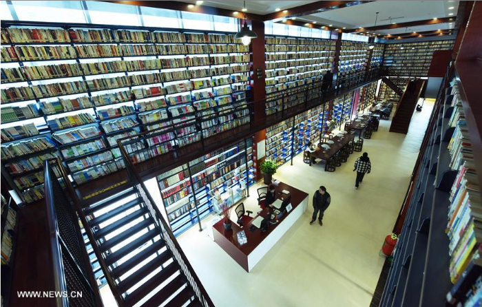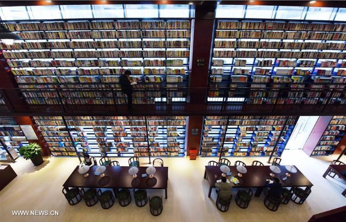 People read books in a public library at Gongshu District of Hangzhou, capital of east China's Zhejiang Province, Dec. 28, 2016. The library, which covers an area of 5,000 square meters, collects about 320,000 books. (Xinhua/Long Wei)