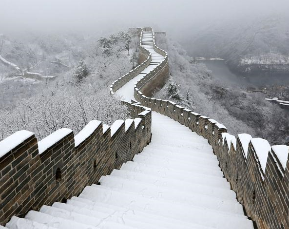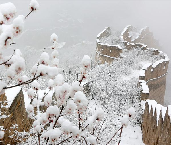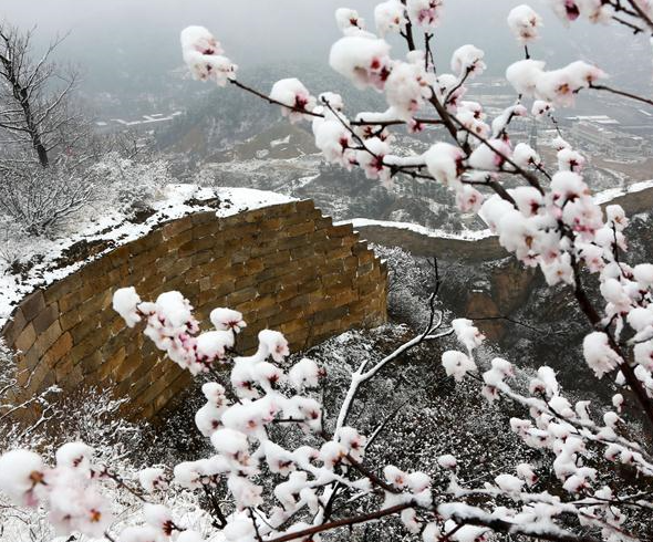 Photo taken on March 24, 2017 shows the snow scenery of Huanghuacheng Lakeside Great Wall Reserve in the suburban district of Huairou in Beijing, capital of China. A snowfall hit the district on Friday. (Xinhua/Bu Xiangdong)