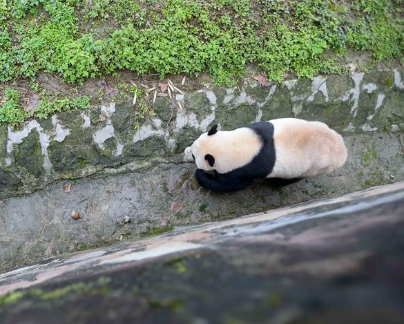 Photo taken on March 24, 2017 shows the giant panda Bao Bao at the Dujiangyan base of the China Conservation and Research Center for the Giant Panda in southwest China's Sichuan Province. Bao Bao, a giant panda born in the United States, ended its one-month quarantine here on Friday after returning to China. (Xinhua/Xue Yubin)