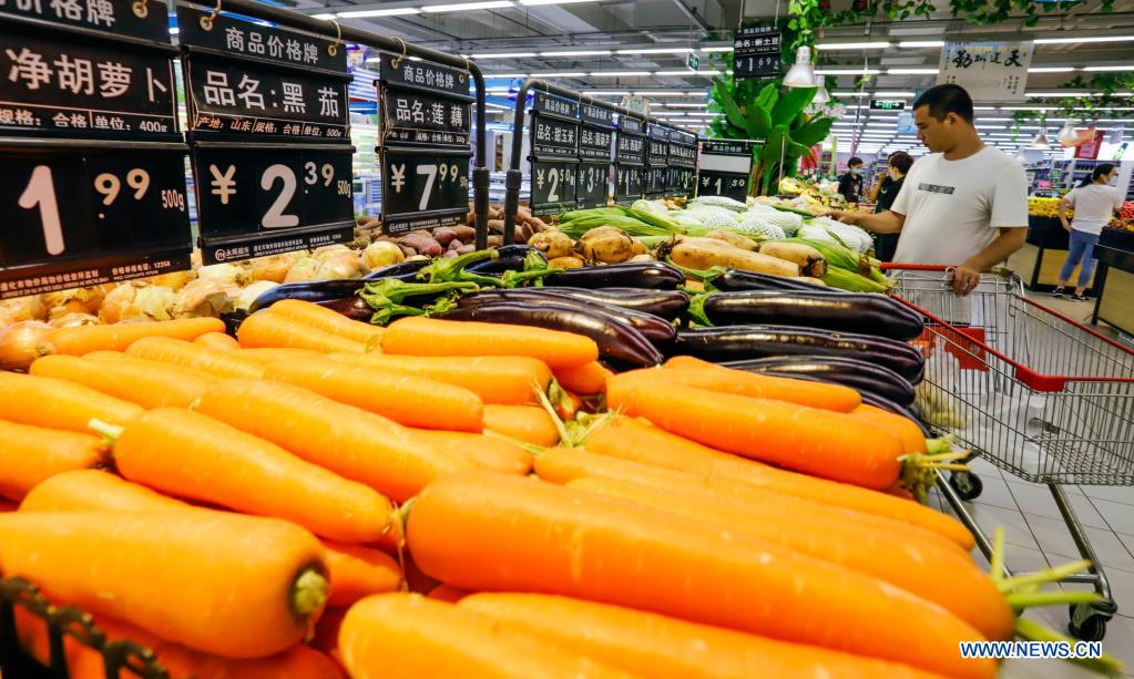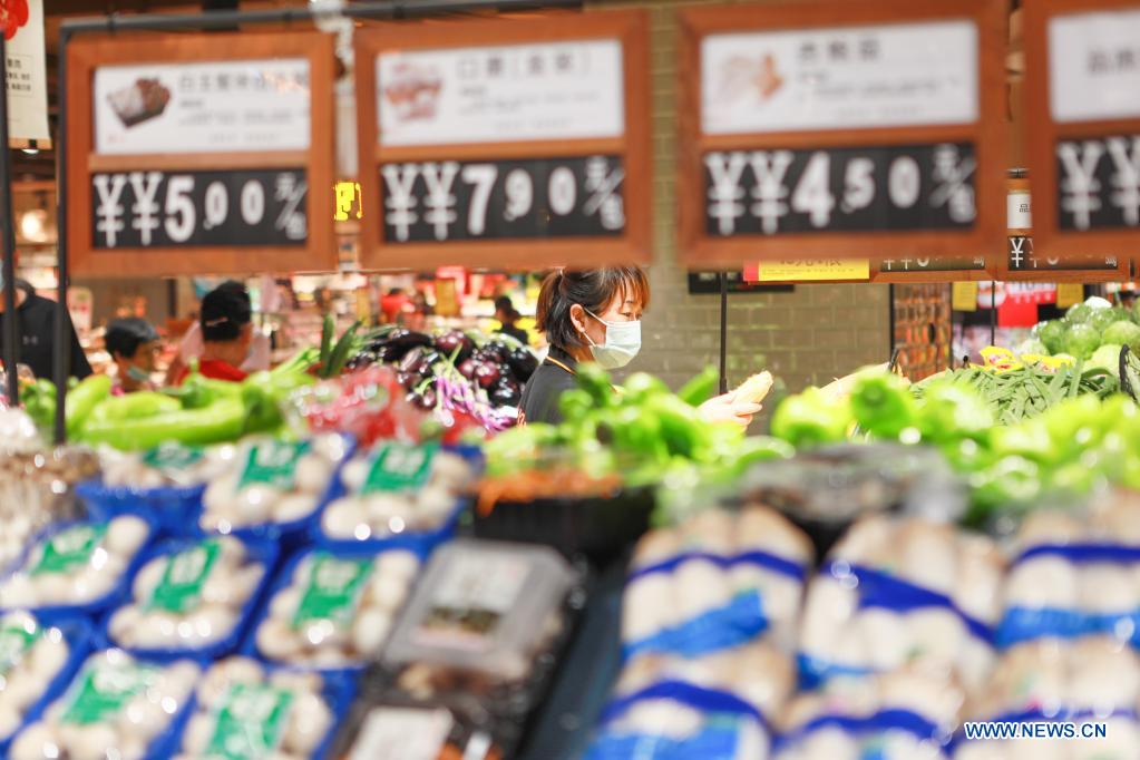 A citizen shops at a supermarket in Handan City, north China's Hebei Province, June 9, 2021. China's consumer price index (CPI), a main gauge of inflation, rose 1.3 percent year on year in May, data from the National Bureau of Statistics showed Wednesday. (Photo by Li Hao/Xinhua)