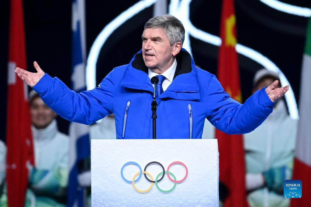 International Olympic Committee (IOC) President Thomas Bach addresses the opening ceremony of the Beijing 2022 Olympic Winter Games at the National Stadium in Beijing, capital of China, Feb. 4, 2022. (Xinhua/Li Ga)