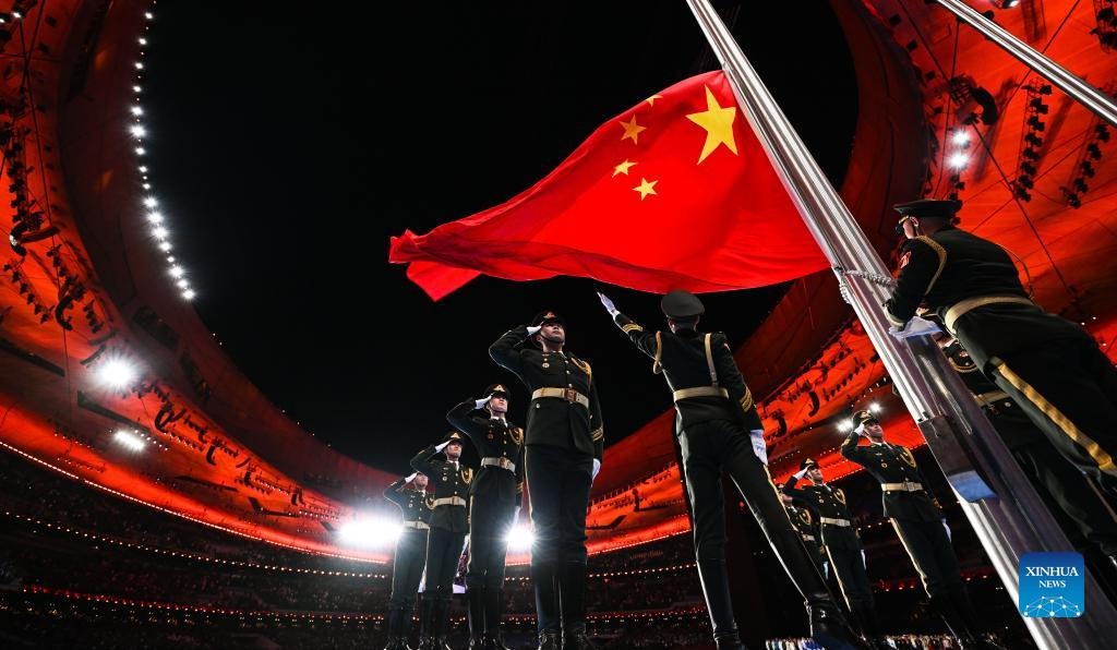 Chinese national flag is raised during the opening ceremony of the Beijing 2022 Olympic Winter Games at the National Stadium in Beijing, capital of China, Feb. 4, 2022. (Xinhua/Ju Huanzong)