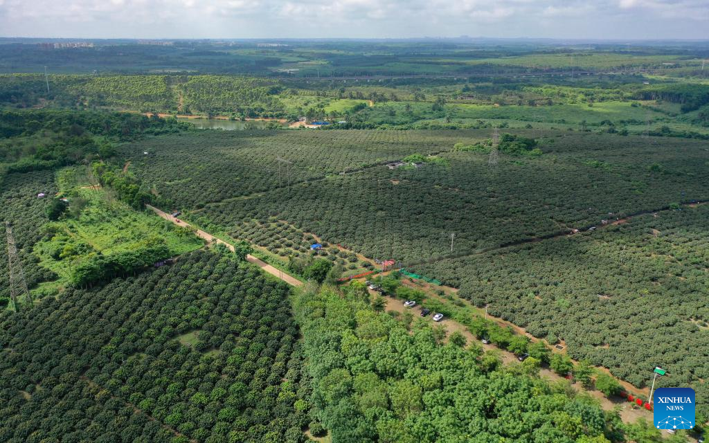 Aerial photo shows a litchi plantation at Dafeng Town in Chengmai County, south China's Hainan Province, May 19, 2022. Harvest season for litchi has come in Chengmai County. (Xinhua/Guo Cheng)