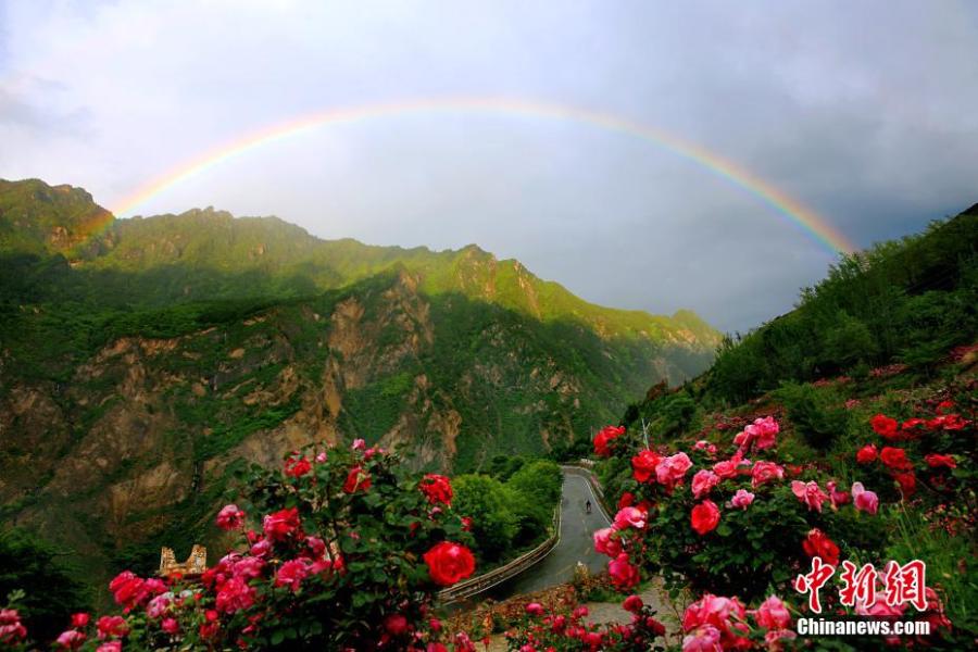 More than 1.3 hectares of roses in full bloom form a sea of stunning colors, attracting many tourists in Jiaju Tibetan Village, Danba County of Ganzi Tibetan Autonomous Prefecture, southwest China's Sichuan Province in late May. (Photo: China News Service/Li Yongan)