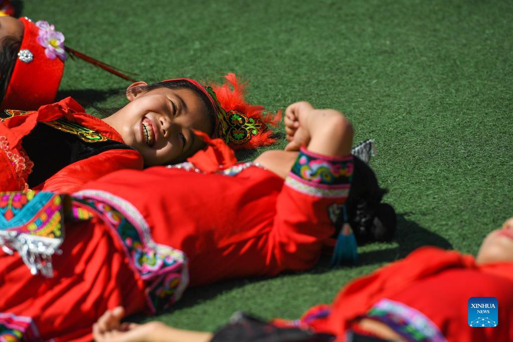 Children take part in a performance to celebrate the International Children's Day at Houzaimen primary school in Xincheng District of Xi'an, northwest China's Shaanxi Province, June 1, 2022. (Xinhua/Zhang Bowen)