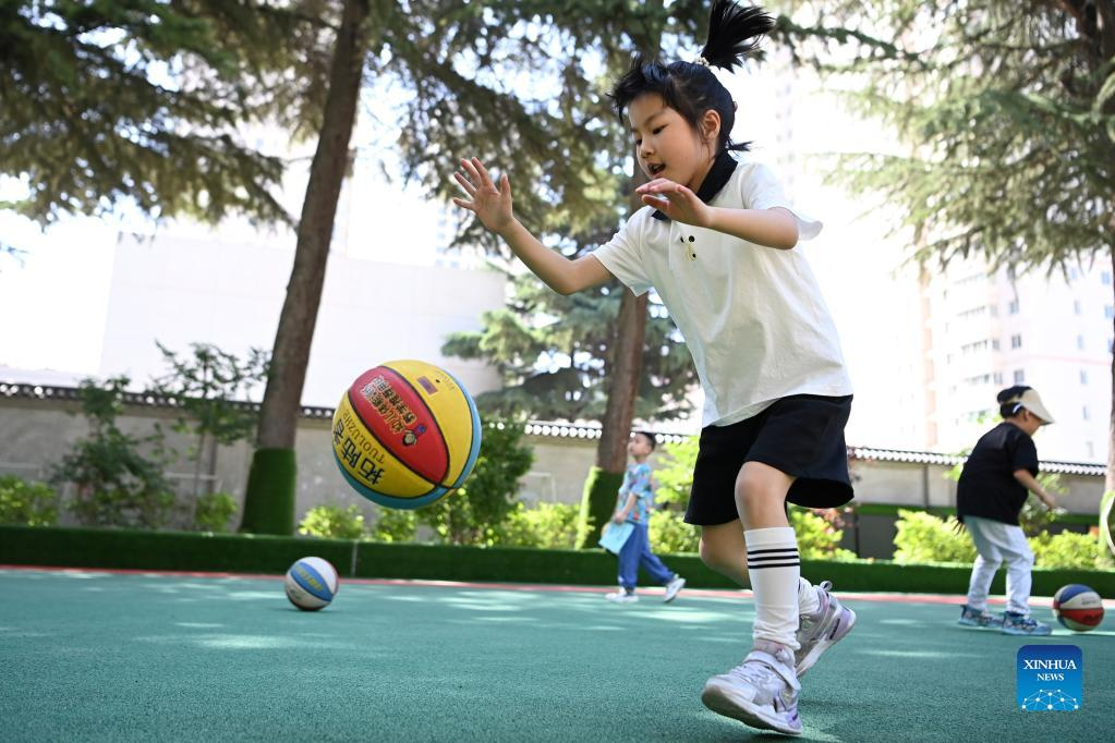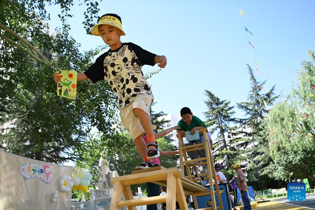 Students play games to celebrate the International Children's Day at a primary school in Hohhot, north China's Inner Mongolia Autonomous Region, June 1, 2022. (Xinhua/Liu Lei)