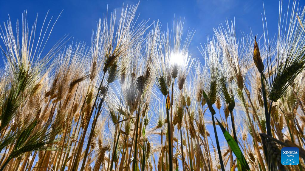Photo taken on Sept. 19, 2022 shows highland barley waiting to be harvested in Rasog Township of Gyangze County, Xigaze, southwest China's Tibet Autonomous Region. (Xinhua/Jigme Dorje)