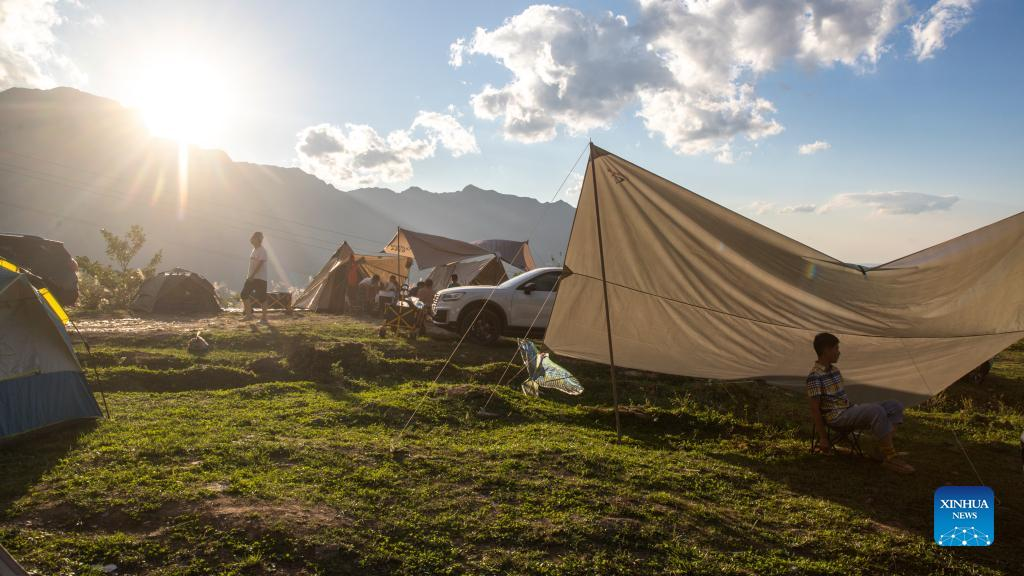 Tourists go camping in Nanchuan District of southwest China's Chongqing, Oct. 2, 2022. (Photo by Qu Mingbin/Xinhua)