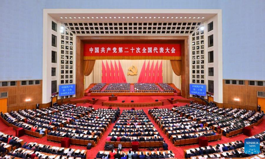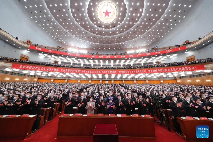 The 20th National Congress of the Communist Party of China (CPC) opens at the Great Hall of the People in Beijing, capital of China, Oct. 16, 2022. Xi Jinping delivered a report to the 20th CPC National Congress on behalf of the 19th CPC Central Committee on Sunday. (Xinhua/Yue Yuewei)