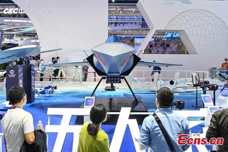 An unmanned aircraft is exhibited at the 14th China International Aviation and Aerospace Exhibition (Airshow China) in Zhuhai, south China's Guangdong Province, Nov. 8, 2022. (Photo: China News Service/Chen Jimin)