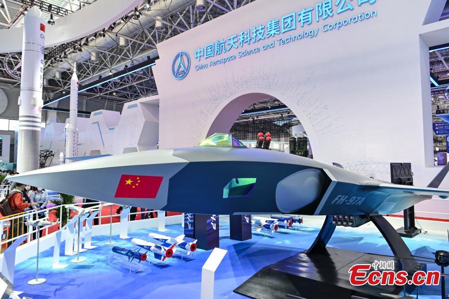 Photo taken on Nov. 9, 2022 shows the model of FH-97A "loyal wingman" unmanned aircraft at the 14th China International Aviation and Aerospace Exhibition (Airshow China) in Zhuhai, south China's Guangdong Province, Nov. 8, 2022. (Photo: China News Service/Chen Jimin)