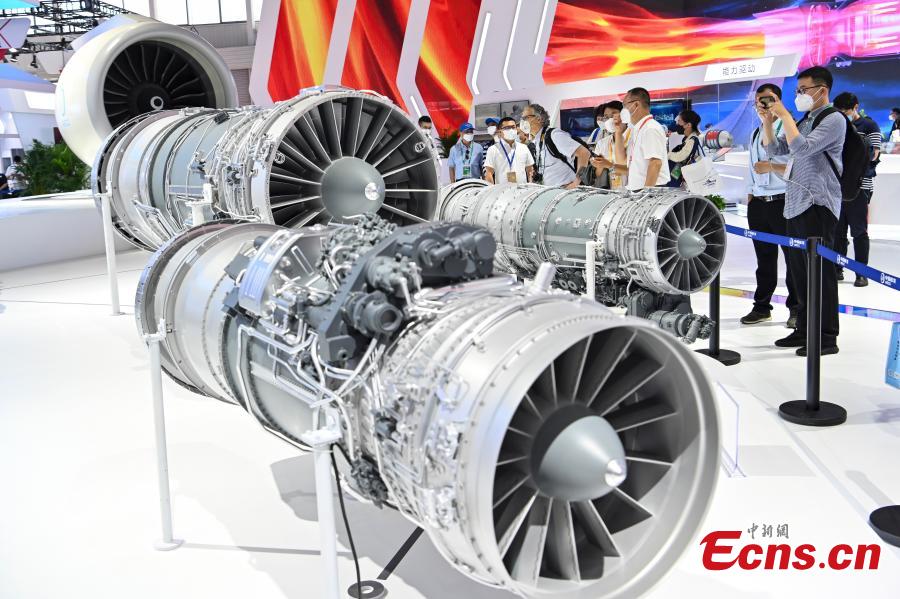 The Taihang turbofan engines are exhibited at the 14th China International Aviation and Aerospace Exhibition (Airshow China) in Zhuhai, south China's Guangdong Province, Nov. 8, 2022. (Photo: China News Service/Chen Jimin)