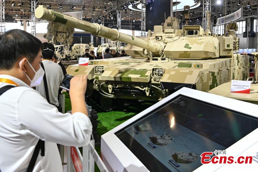 A battle tank is exhibited at the 14th China International Aviation and Aerospace Exhibition (Airshow China) in Zhuhai, south China's Guangdong Province, Nov. 8, 2022. (Photo: China News Service/Chen Jimin)