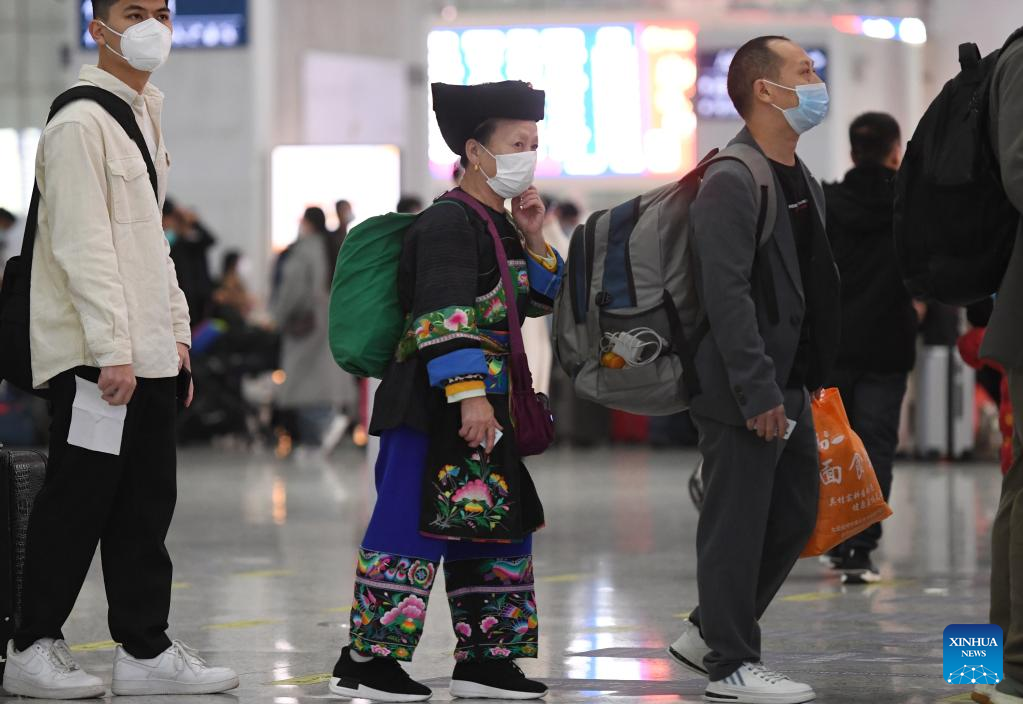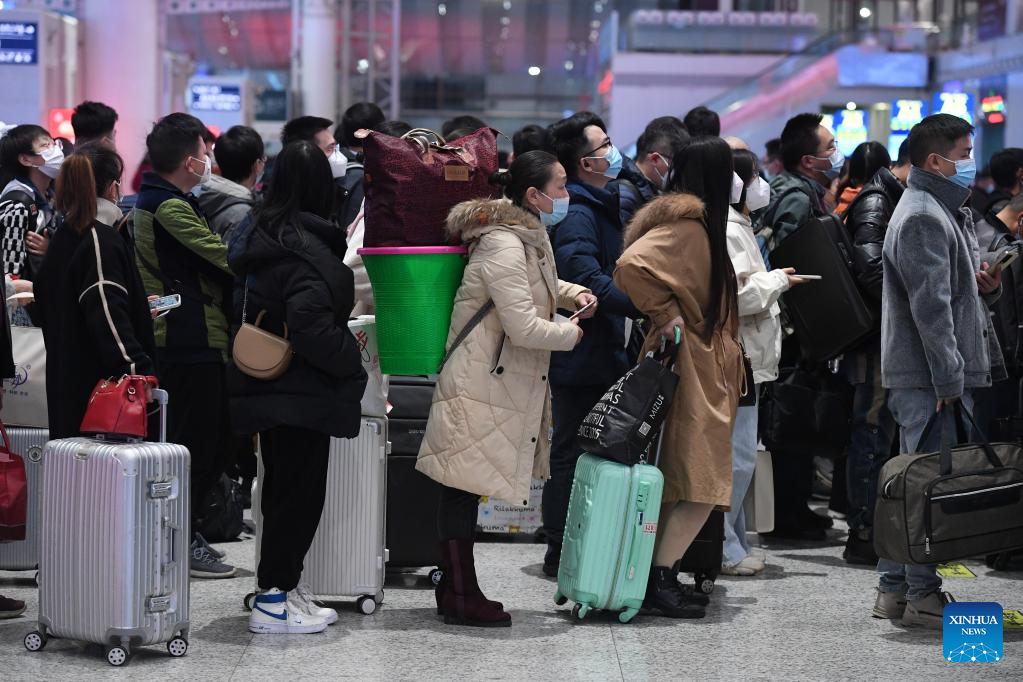 Passengers are seen in Shenzhen North railway station in Shenzhen, south China's Guangdong Province, Jan. 7, 2023. The Spring Festival travel rush this year, will continue for 40 days from Jan. 7 to Feb. 15. (Xinhua/Mao Siqian)