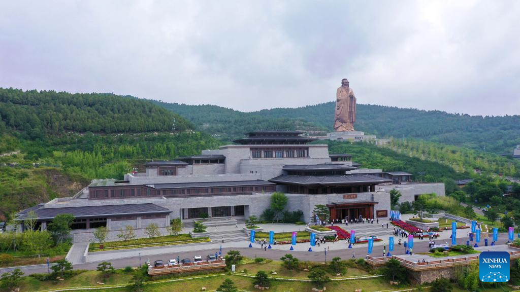 This photo taken on June 26, 2023 shows the exterior view of the venue for the World Internet Conference Nishan Dialogue on Digital Civilization in Qufu, east China's Shandong Province. Themed "The Age of AI: Building a Digital World of Exchanges, Mutual Learning and Inclusiveness," the dialogue invited several hundred high-level representatives from governmental departments, business sectors, and academic and research institutions worldwide to attend the event in person or via video link. (Xinhua/Guo Xulei)