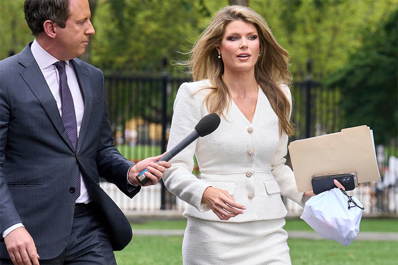 Lindsey Halligan, special assistant to the president, speaks with a reporter outside of the White House, Aug. 20, 2025. Jacquelyn Martin/AP, FILE