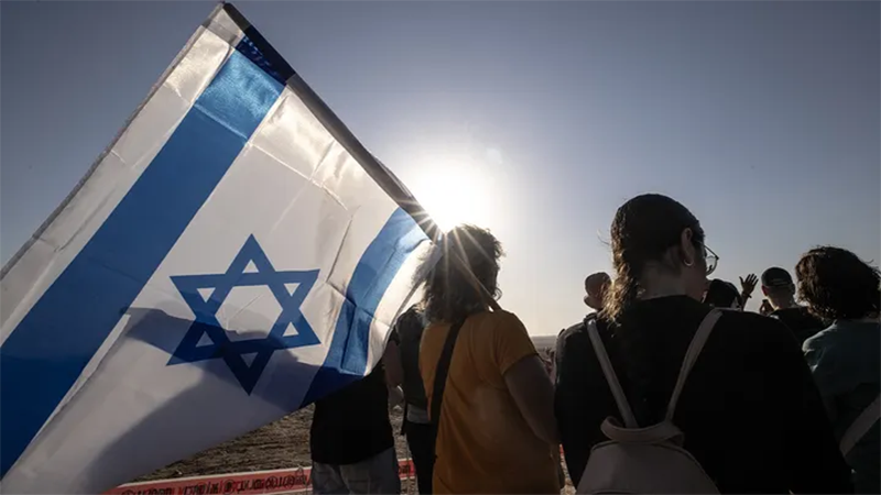 Israelis marched from Sderot toward the northern border of Gaza, calling for the re-establishment of settlements in the territory, on July 30, 2025, in Israel. (Mostafa Alkharouf/Anadolu via Getty Images)